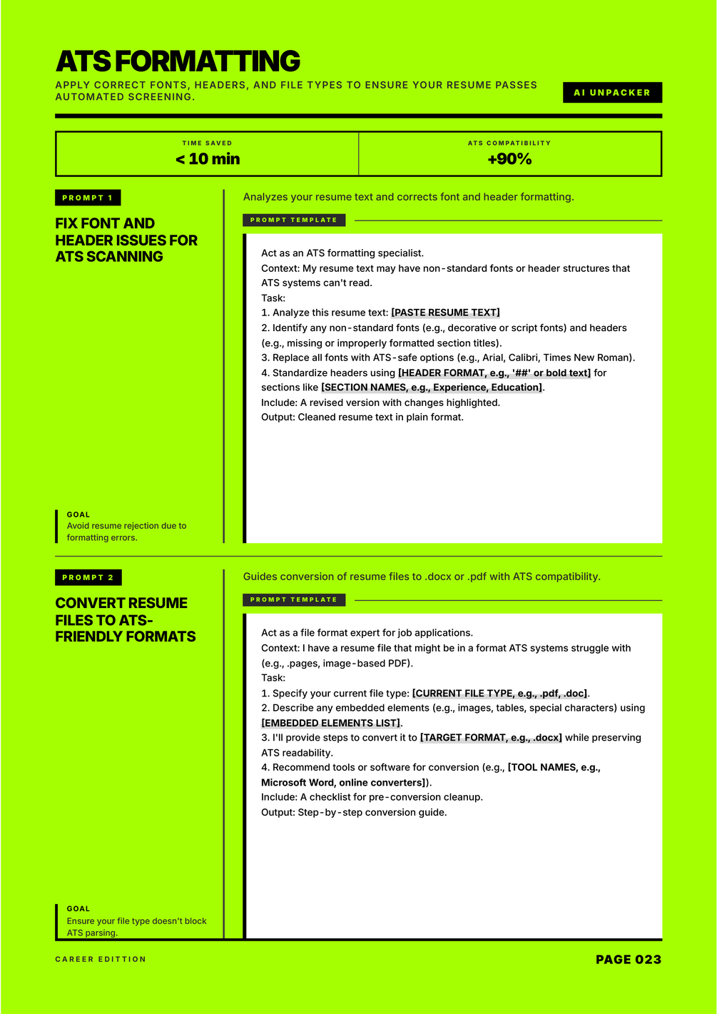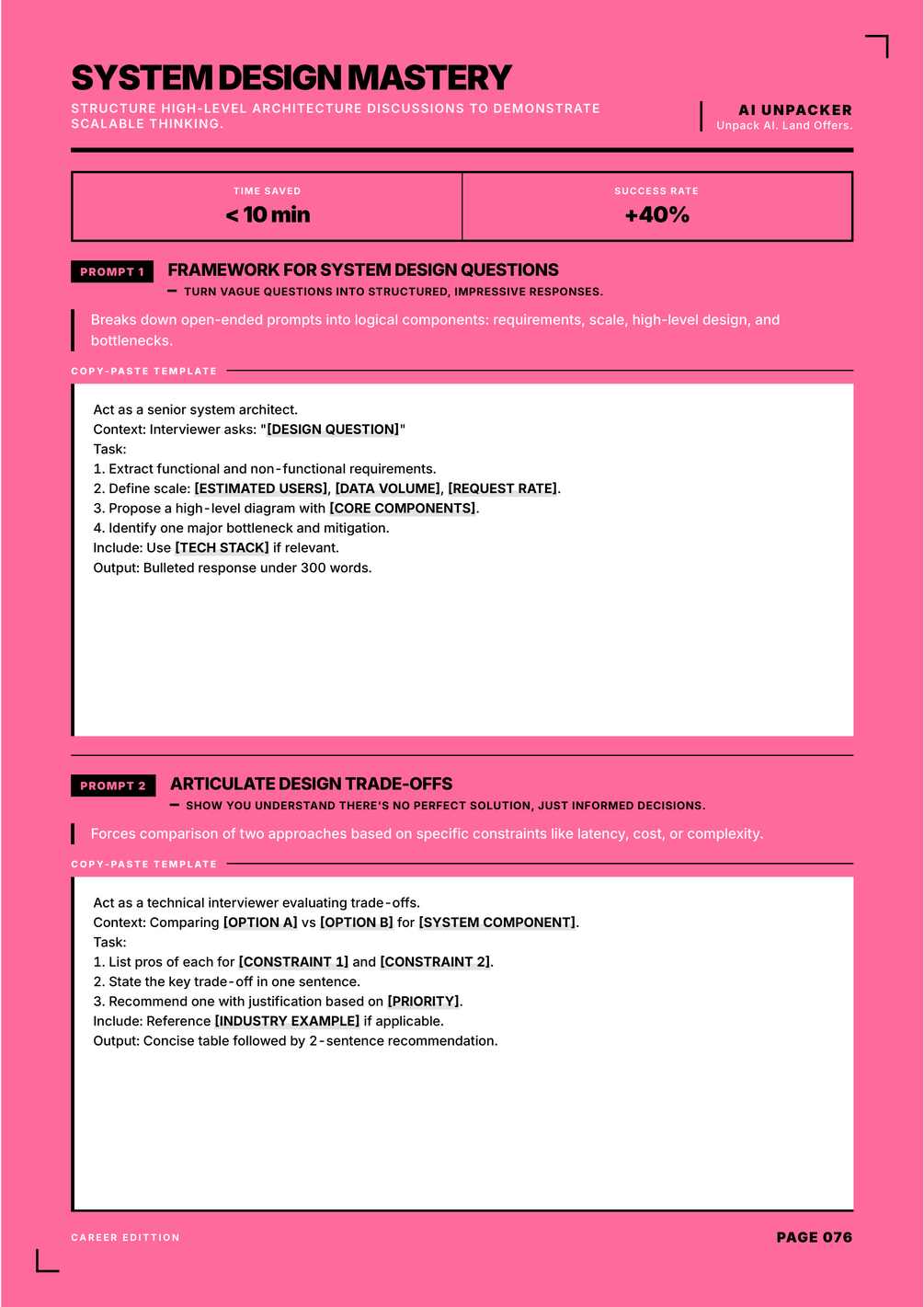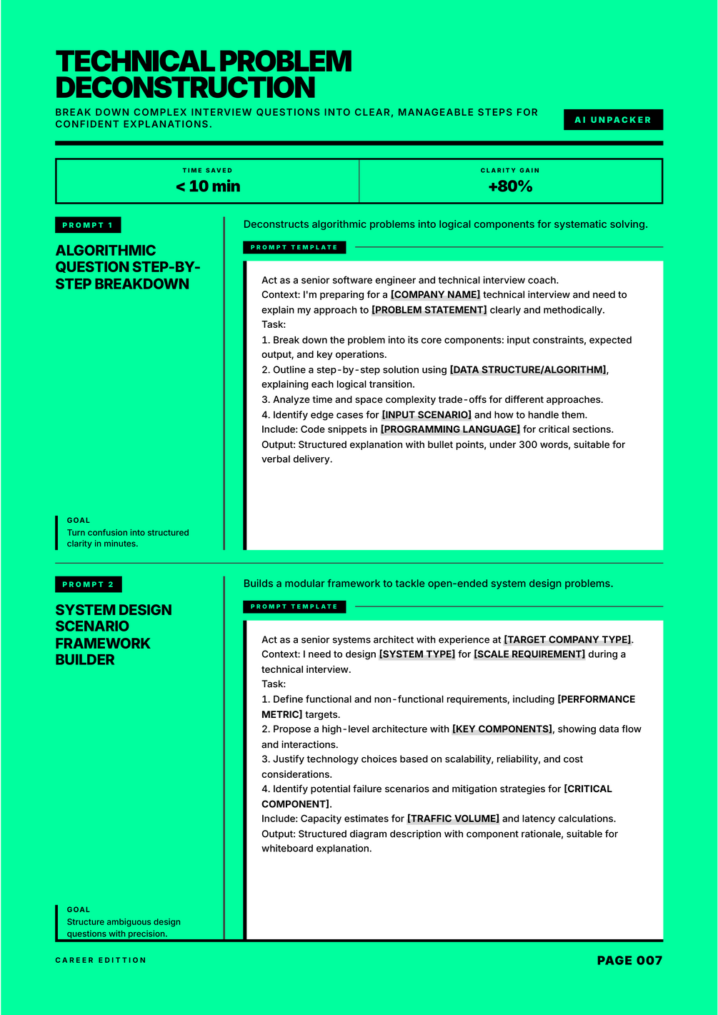 This ebook is your master strategy guide to turning ChatGPT, Claude, and Gemini into your personal career team. It’s not just "advice" it is a copy-paste library of engineered prompts designed to hack the hiring process.