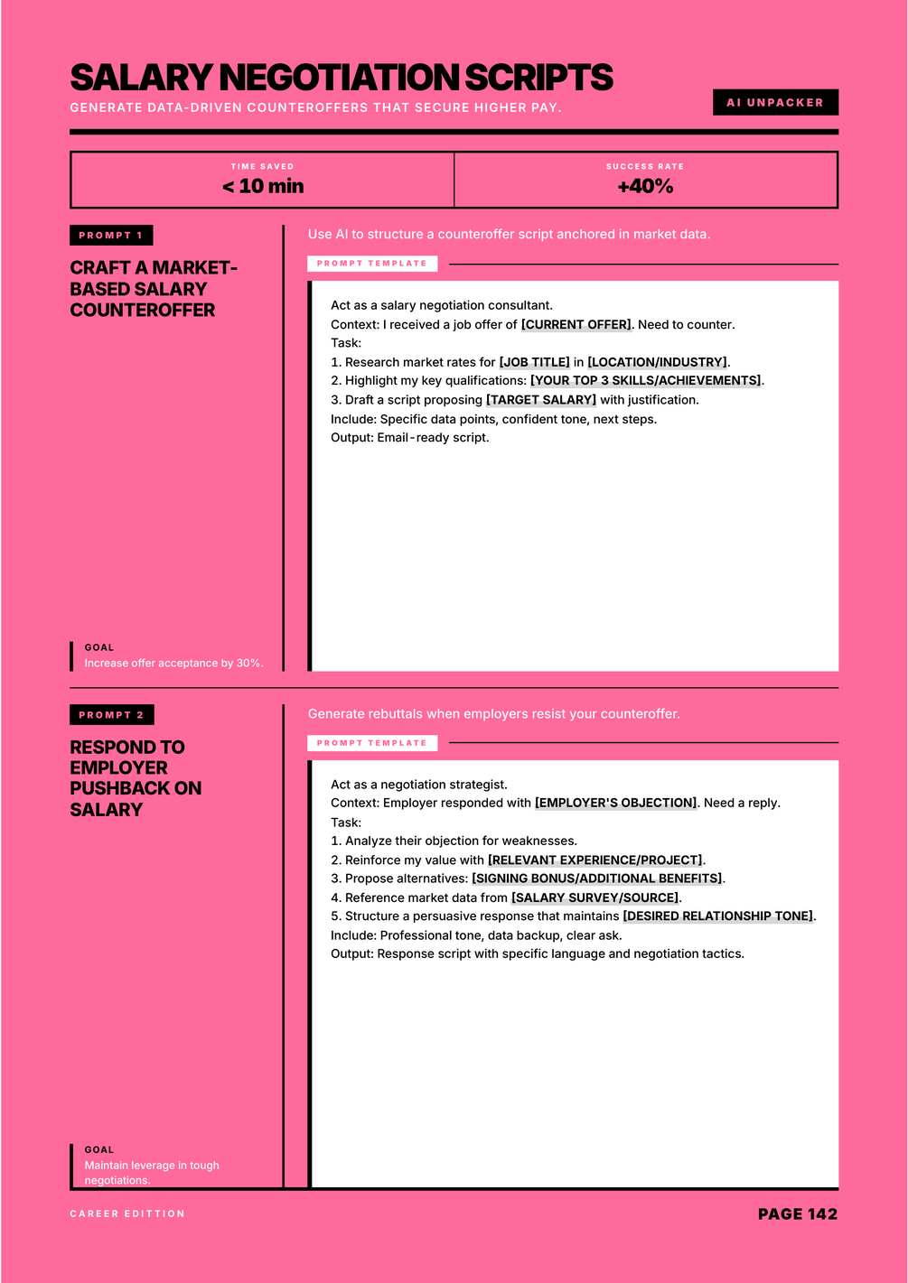 - Negotiate Like a Pro: Use data-backed scripts to confidentially increase your salary offer.